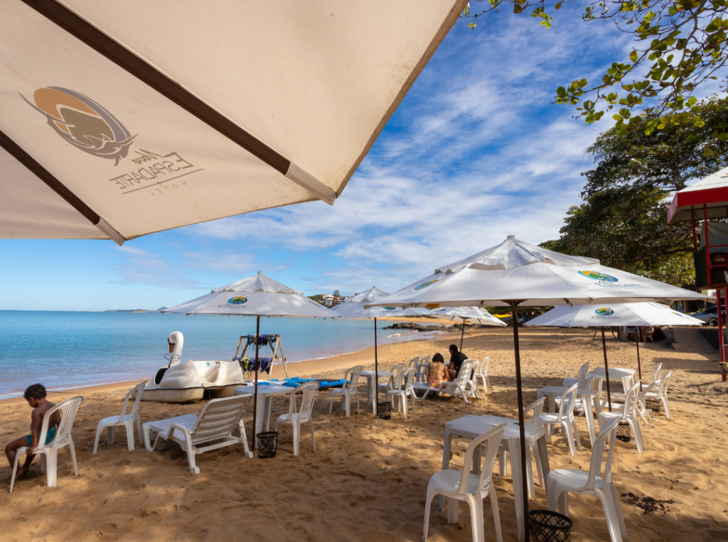 Com uma localização privilegiada, o Hotel Espadarte fica em frente à praia da Areia Preta, com uma vista deslumbrante para o pôr do sol e para o Monte Aghá, um cartão postal da região.