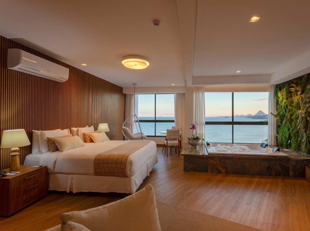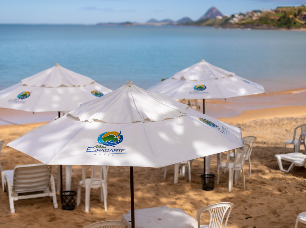 Com uma localização privilegiada, o Hotel Espadarte fica em frente à praia da Areia Preta, com uma vista deslumbrante para o pôr do sol e para o Monte Aghá, um cartão postal da região.