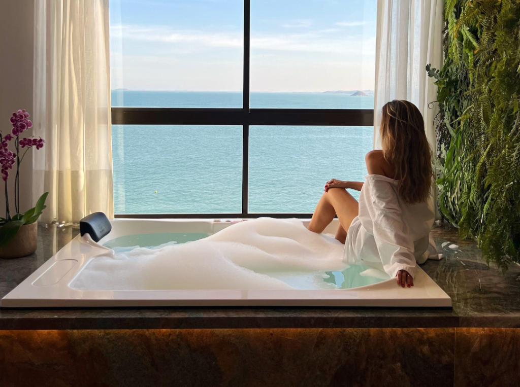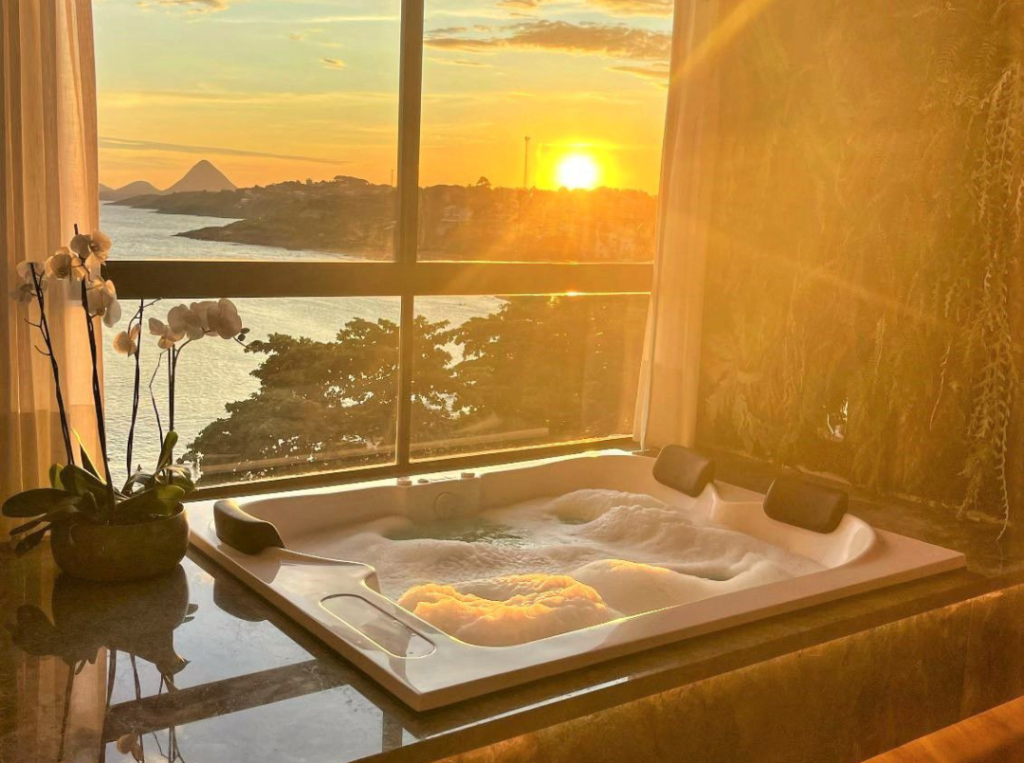 A suíte presidencial do Hotel Espadarte é a escolha ideal para você sentir todos os prazeres da vida. Com um design moderno e imponente, a suíte presidencial possui uma hidromassagem com vista para o mar e a vista mais exclusiva do hotel. Na suíte presidencial, oferecemos um café da manhã especial, com um cardápio gourmet e servido na própria suíte, que proporciona uma experiência inesquecível aos seus hóspedes.